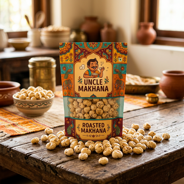 Uncle Makhana is our flagship mass-market brand, designed to make healthy snacking a reality for every Indian family. We believe great taste shouldn't be a luxury. Our bold flavours, vibrant packaging, and honest pricing put healthy snacking within reach of every household across India.